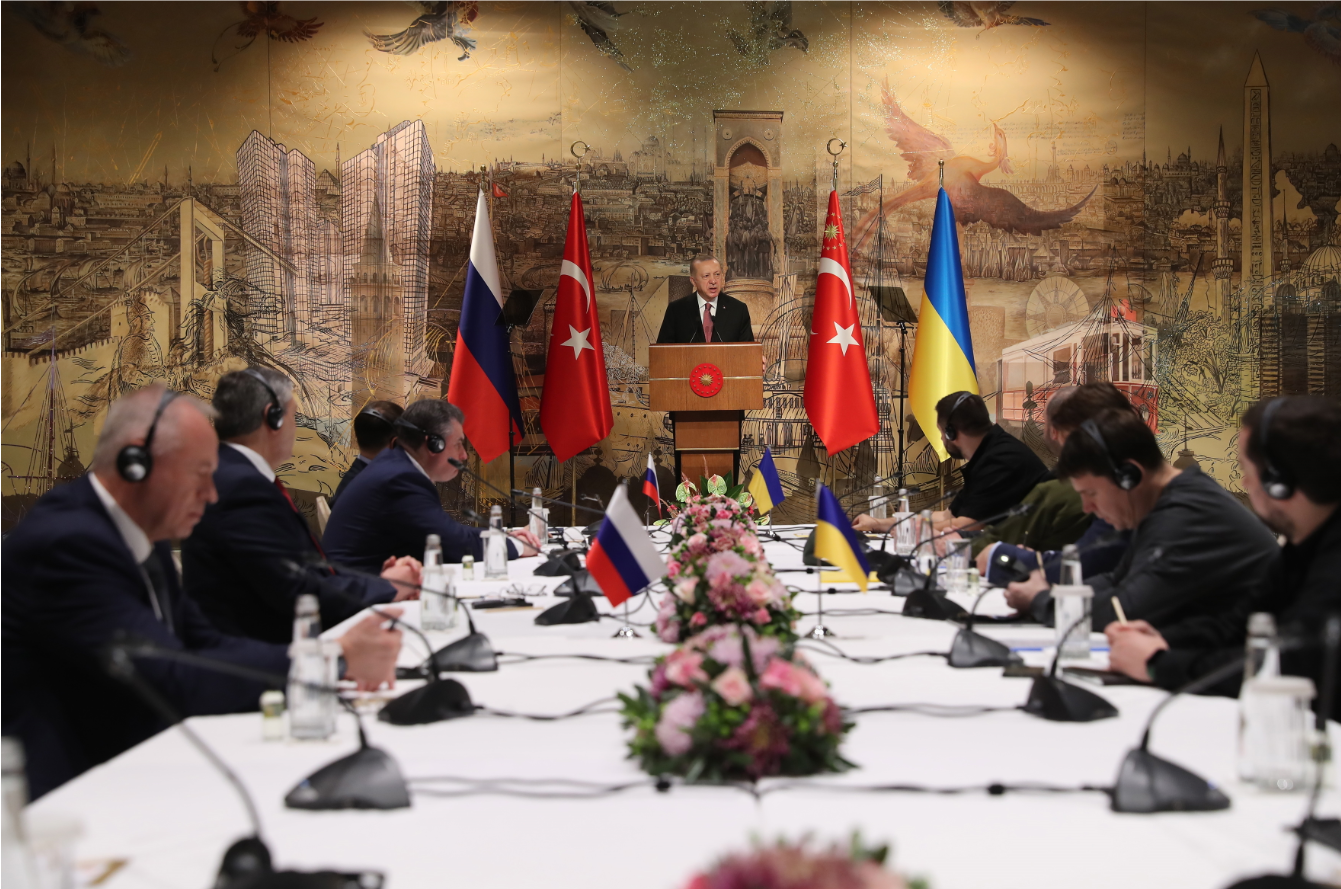 資料圖:2022年,俄羅斯和烏克蘭談判代表團在土耳其伊斯坦布爾舉行面對面談判。