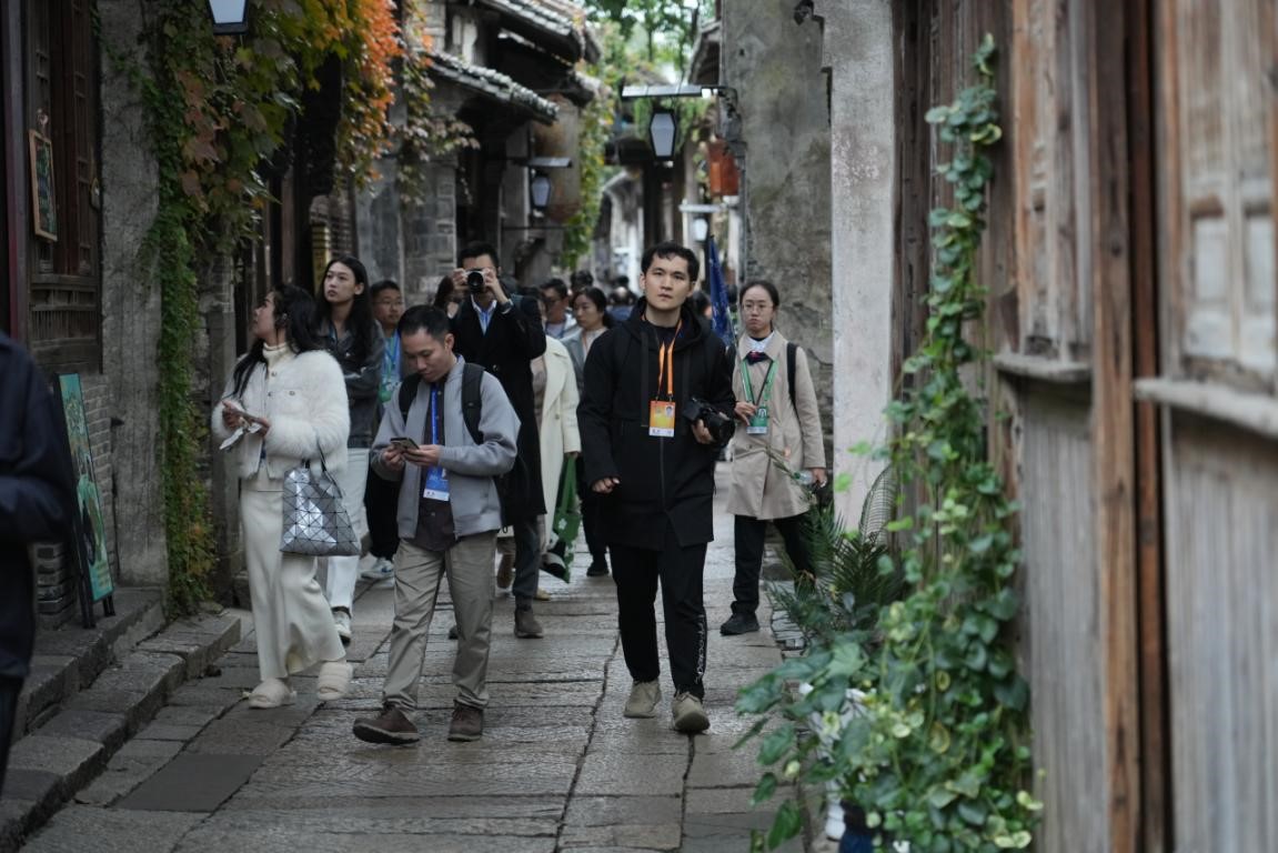 2024年11月18日,媒體人員在景區內採訪拍攝。(光明網記者 趙金悦攝/光明圖片)