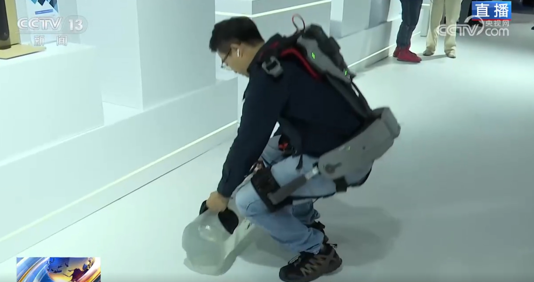 在2024年世界互聯網大會烏鎮峯會“互聯網之光”博覽會的現場,記者首先向我們展示了外骨骼機器人,這款機器人融合了傳感、控制、信息耦合、移動計算等技術,它有什麼作用呢?您看,如果不穿這套裝備,記者雙手拎起一袋重量50斤的水袋還是有些吃力的,但是依靠這套外骨骼機器人,給腰部等核心部位助力,提起這50斤的水袋非常輕鬆。這套外骨骼機器人主要用於重體力搬運的應用場景,主要是給使用者助力減負用的。