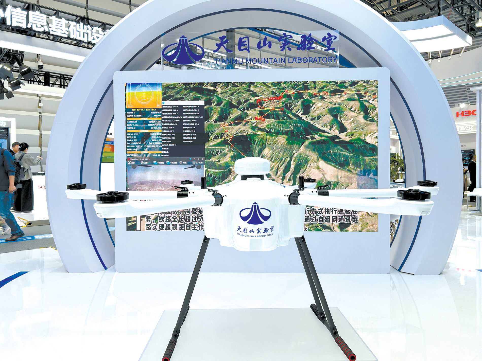 該實驗室執行主任戴彬在現場告訴《環球時報》記者,“天目山一號”能夠飛行約4小時,超百公里,解決了許多工業場景的痛點問題。例如,如果採用固定翼無人機進行電力巡檢,只能發現問題,沒法處理問題,而旋翼機能夠懸停,可以幫助清除電線上的冰。