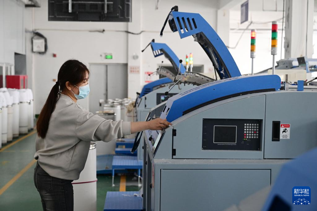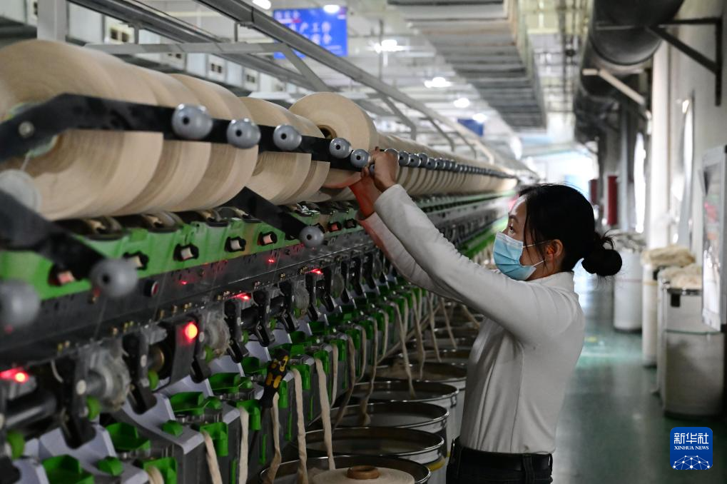 10月25日,工作人員在安徽省天助紡織科技集團股份有限公司的生產車間裏工作。新華社記者 周牧 攝