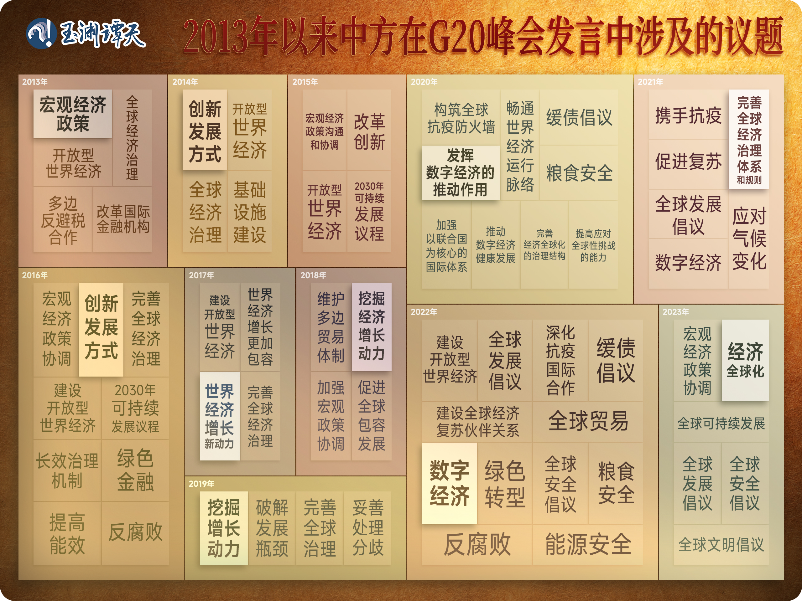 譚主梳理了2013年以來中方在歷次G20峯會上的發言,中國關注的,都是事關發展的議題,都是顧及最大多數人的議題。