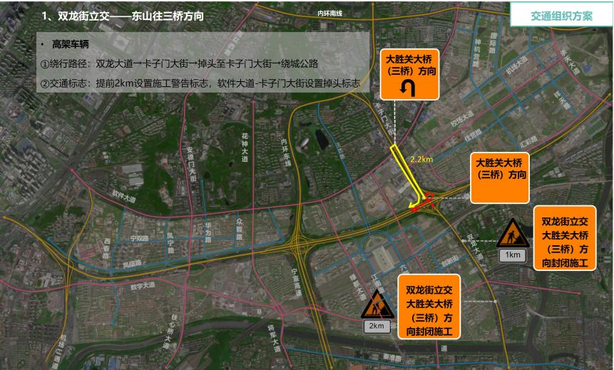 一、第一階段(雙龍街立交東山往三橋方向匝道、卡子門往二橋方向匝道,約2天)