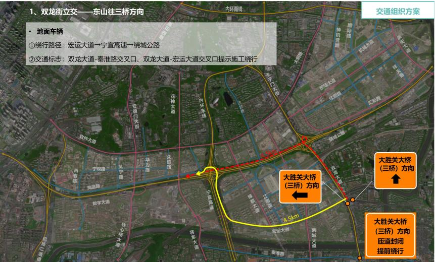 南京交警提醒,在封閉施工期間,過往車輛可從地面道路繞行。