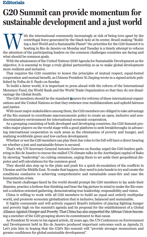 原文標題:G20 Summit can provide momentum for sustainable development and a just world