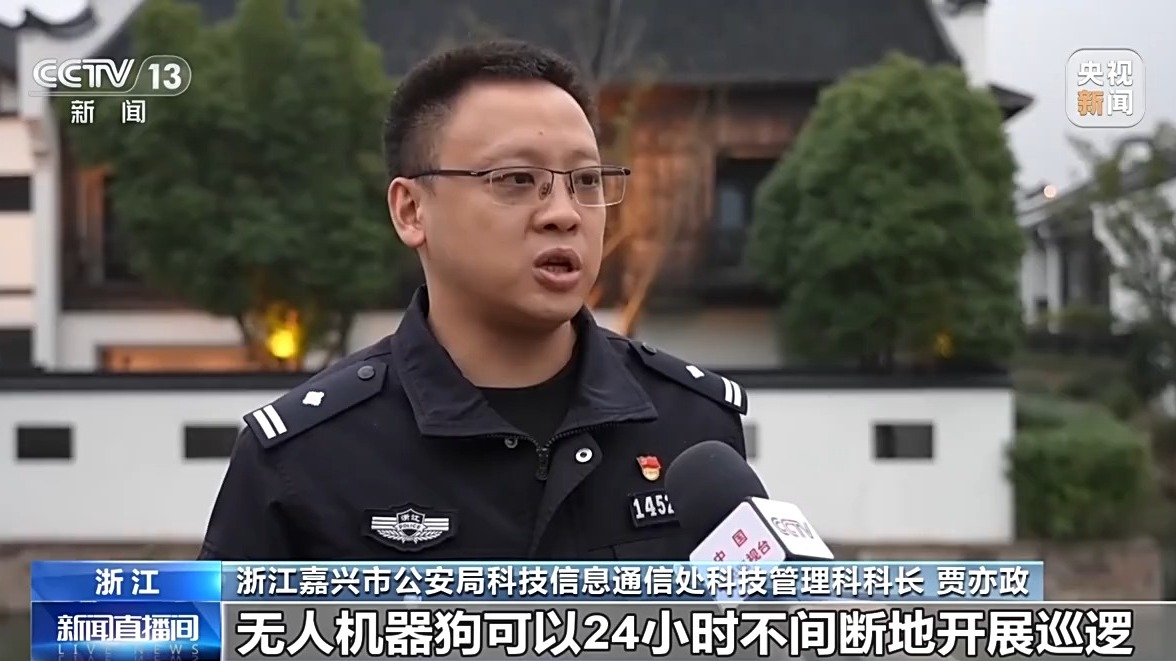 *浙江嘉興市公安局科技信息通信處科技管理科科長 賈亦政:*無人機器狗可以24小時不間斷地開展巡邏,同時它可以實現攀爬樓梯、翻越障礙等功能。無人巡邏車是一款小型的全地形裝備,具有自主路徑規劃、伴隨保障等功能,其載重可達280公斤。在日常警務工作中,可以協助我們運輸重量較大的警用裝備,方便我們警務工作開展。