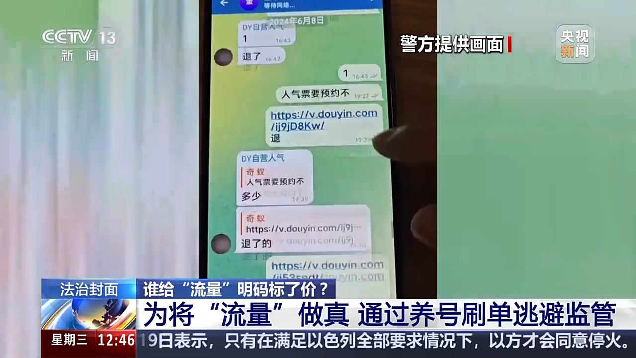 警方取證的一段視頻顯示,網絡水軍的違法嫌疑人正在一個流量羣裏展示他們的後台訂單數據,一旦有客户下單,他們就可以在短時間內快速完成。