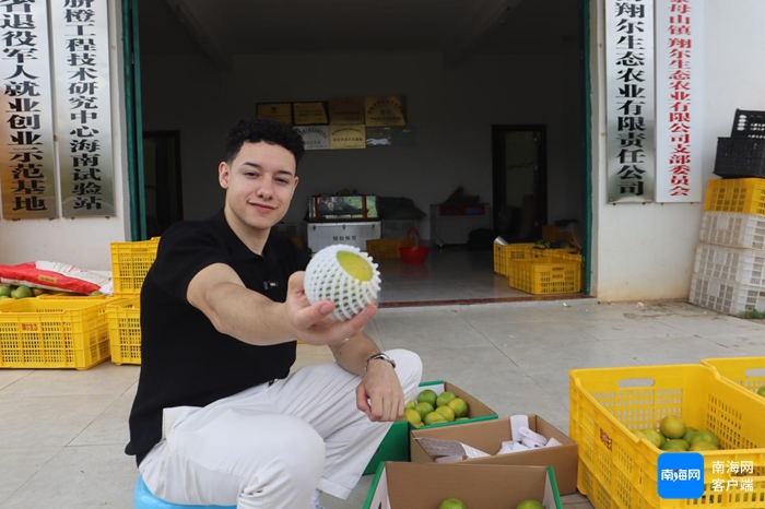 Harvey在打包自己採摘的綠橙。海南國際傳播中心供圖