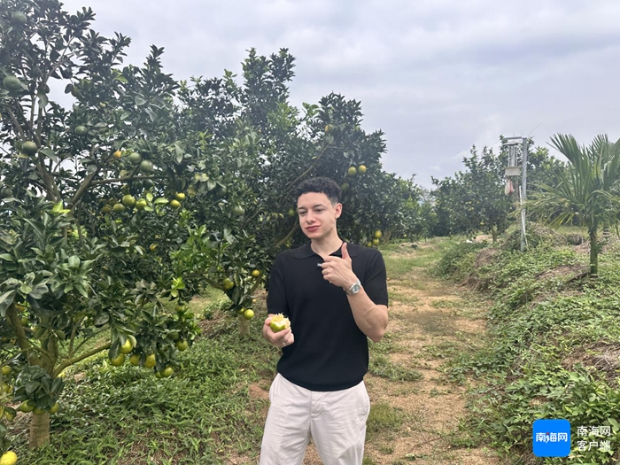 南海網11月20日消息(記者 潘頔)近日,英國網絡紅人哈維(Harvey Charles)走進位於瓊中黎族苗族自治縣黎母山鎮的海南翔爾生態農業綠橙種植園,看着山頭上一棵棵果樹繁茂葱鬱,圓潤飽滿的綠橙猶如一個個綠色的小精靈,在翠綠的枝葉間俏皮地若隱若現……
