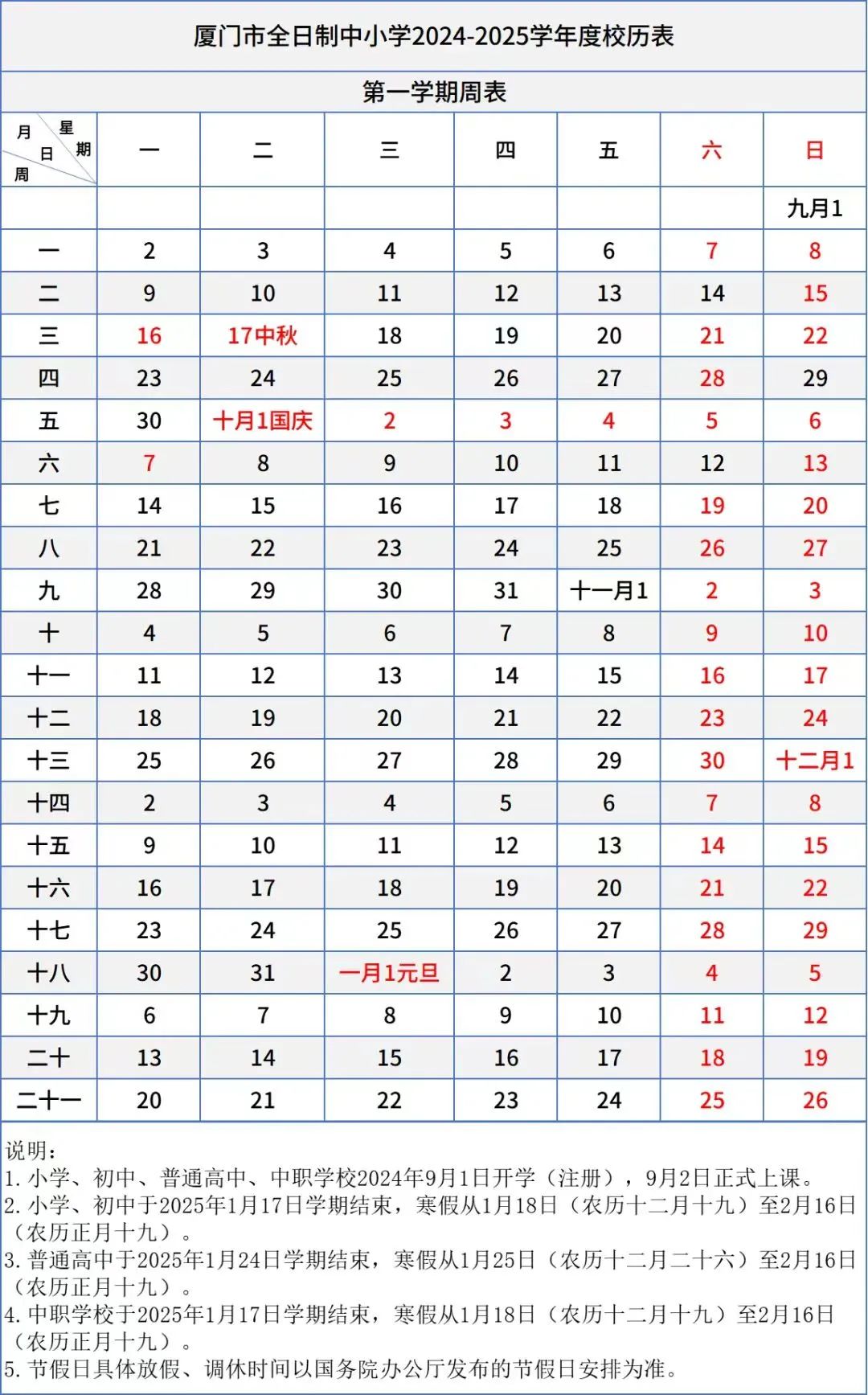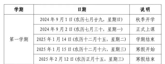 2025年1月20日(農曆十二月二十一,星期一)寒假開始,2月15日(農曆正月十八,星期六)寒假結束。