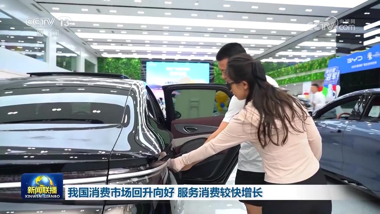 央視網消息 (新聞聯播):在消費品以舊換新等政策帶動下,我國居民消費需求持續釋放,市場銷售明顯回升,服務消費較快增長。