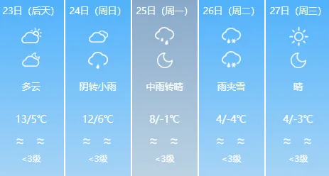 23日晴轉多雲,南風2~3級,最低氣温濟陽區、萊蕪區、鋼城區、商河縣、南山區、起步區0℃左右,市區及其他區縣4℃左右,最高氣温13℃左右。