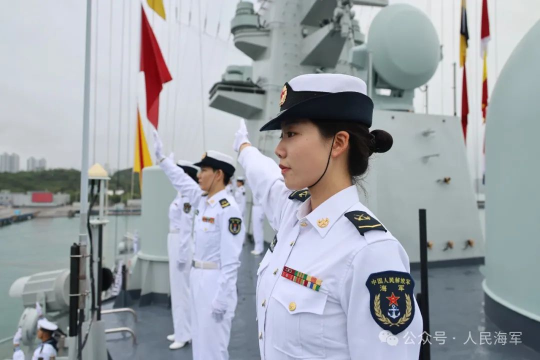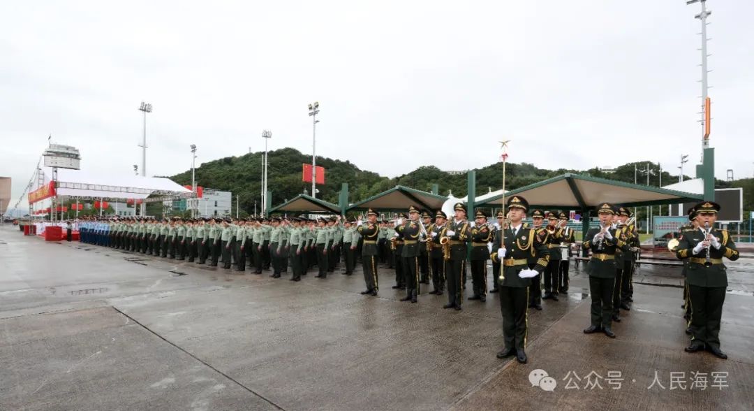 ▲編隊官兵在甲板上整齊列隊,揮手示意。易定 攝