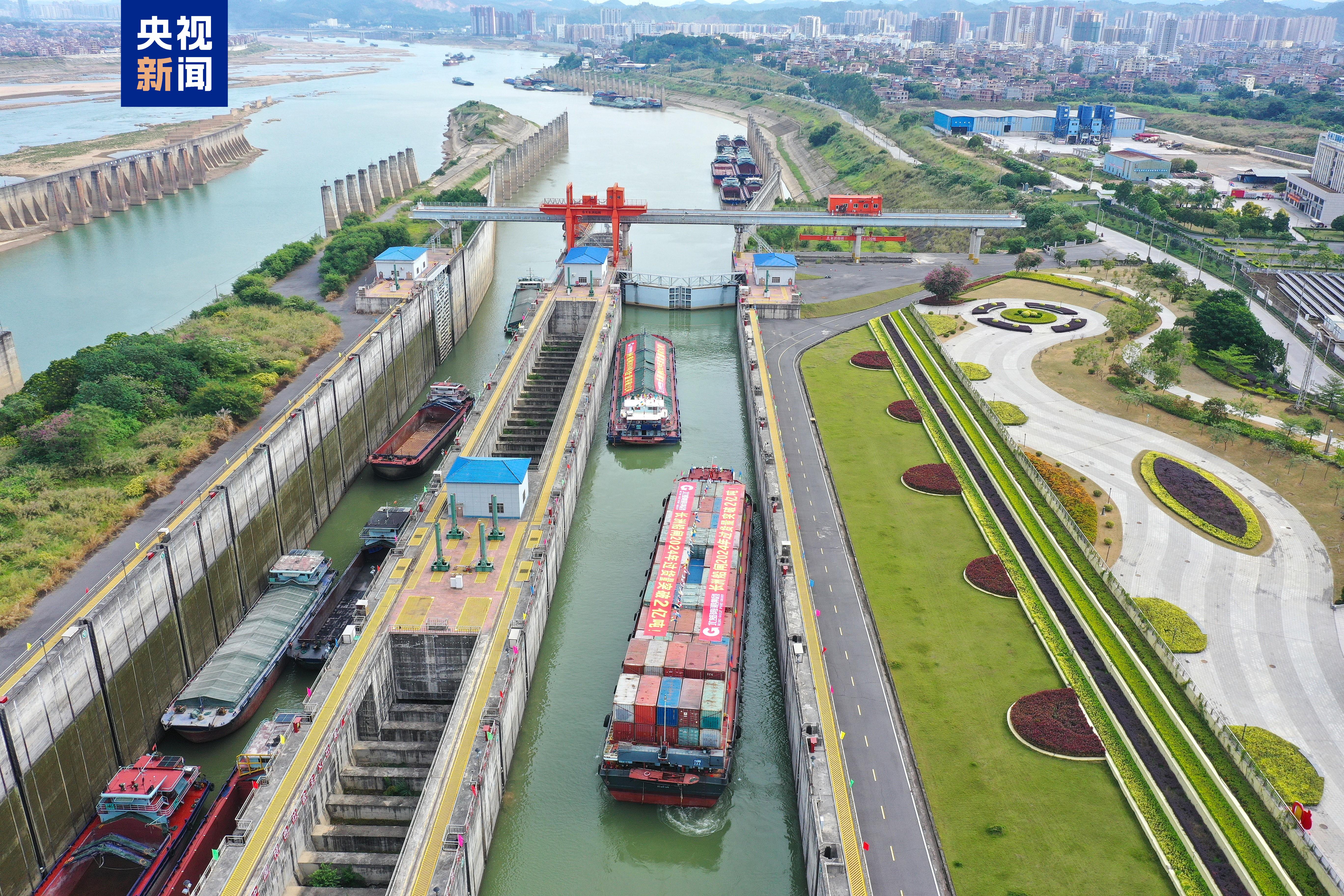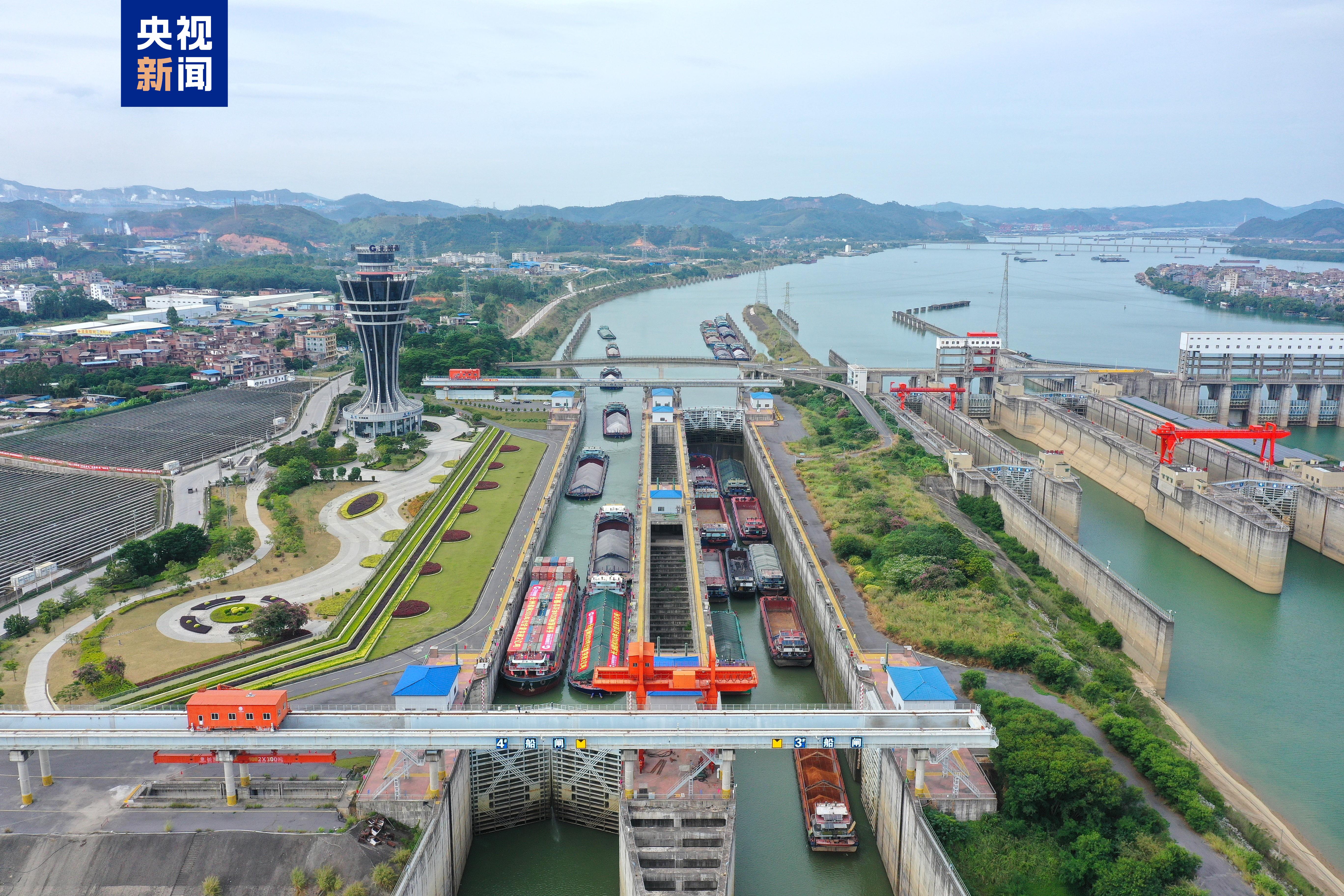 據瞭解,長洲船閘是西江黃金水道建設的重點工程,被稱為西江水道的咽喉,承擔廣西內河90%的任務量。長洲船閘是擁有“四個世界第一”的內河船閘:在內河同一斷面上船閘的線數達到四線,排名世界第一;同一個斷面上船閘的單向通過能力排名世界第一,年單向通過能力達1.36億噸;世界上最大的互泄互灌省水船閘;三線、四線船閘閘室有效尺寸均為長340米、寬34米、門檻水深5.8米,並列為世界上閘室平面尺寸最大的內河單級船閘。(總枱記者 王潔 沈慶)