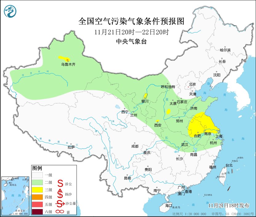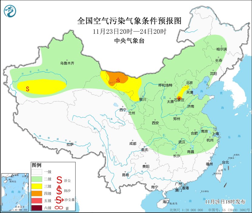 21日夜間至23日,寧夏北部、陝西關中部分地區有霾天氣。此外,24日,受冷空氣大風影響,新疆東部、內蒙古西部、甘肅北部等地有揚沙或浮塵天氣。