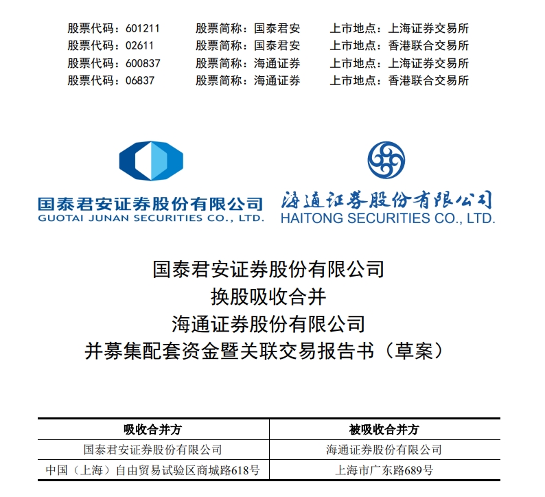 根據《草案》,國泰君安向海通證券全體A股換股股東發行國泰君安A股股票、向海通證券全體H股換股股東發行國泰君安H股股票,並且擬發行的A股股票將申請在上交所上市流通,擬發行的H股股票將申請在香港聯交所上市流通,海通證券的A股股票和H股股票相應予以註銷,海通證券亦將終止上市。