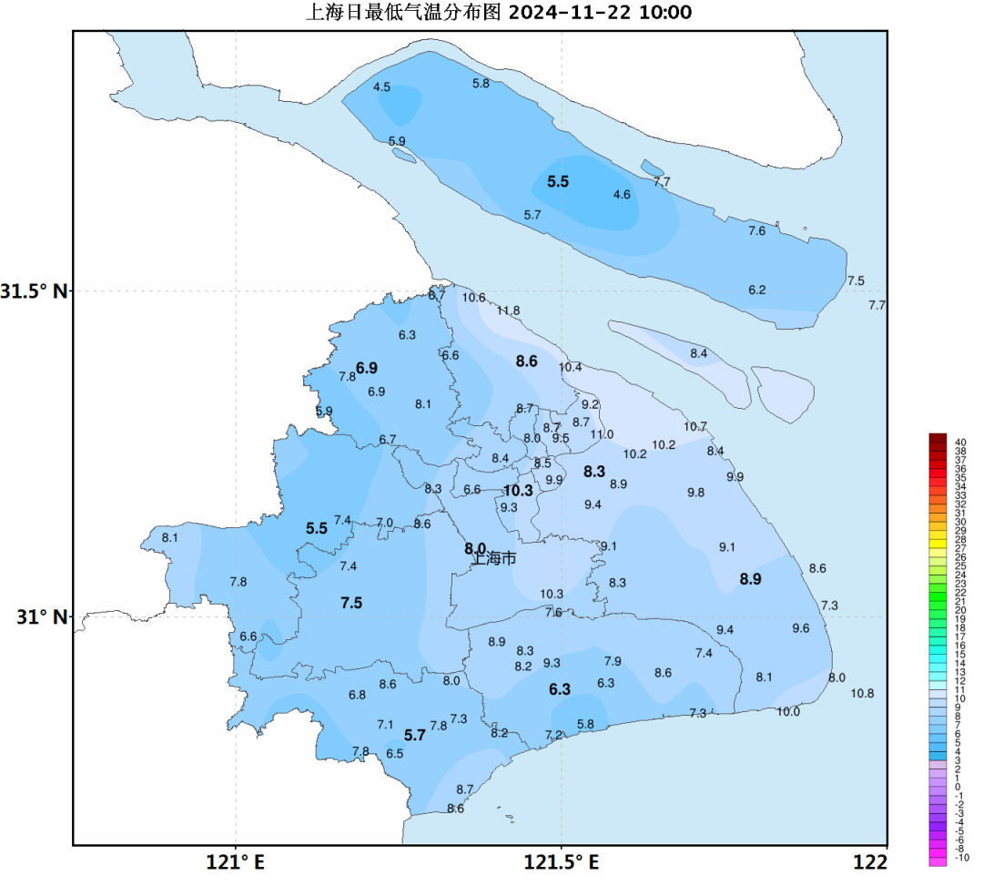 *下週二冷空氣開始影響,上海雨止,氣温明顯下降。**週三最高温8℃,週四最低温只有3℃,這兩天基本都在10℃以下。*冬日氣息拉滿!