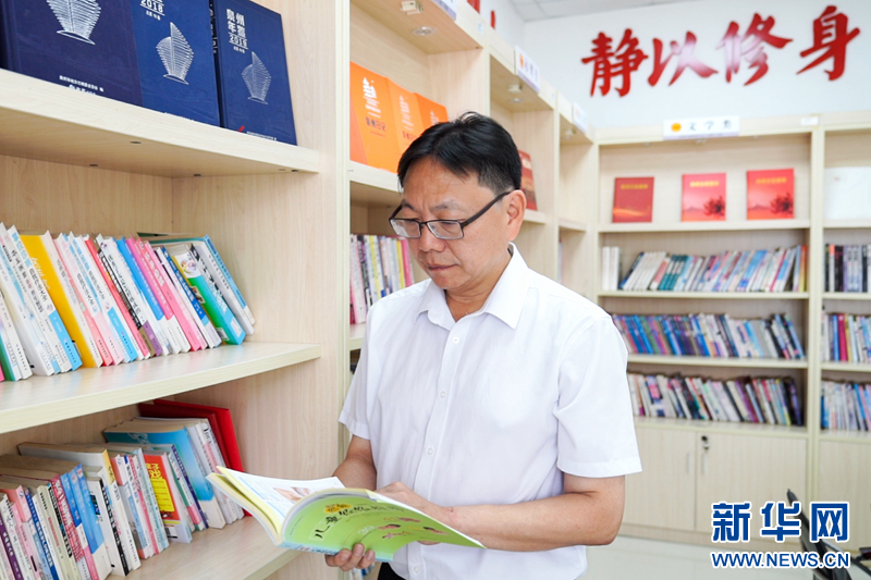 邱俊傑在工會圖書角看書。新華網 肖和勇 攝