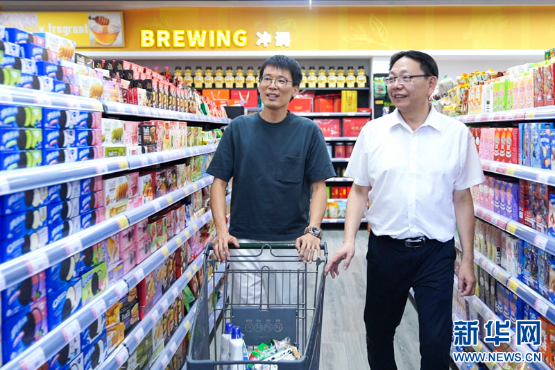 泉州頤和醫院副院長何國鼎與邱俊傑在商場購物。新華網 肖和勇 攝