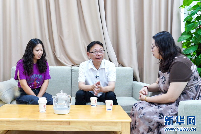 邱俊傑在工會與同事交流。新華網 肖和勇 攝