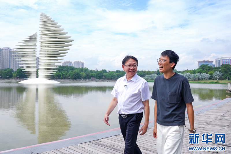 邱俊傑與泉州頤和醫院副院長何國鼎在公園漫步聊天。新華網 肖和勇 攝