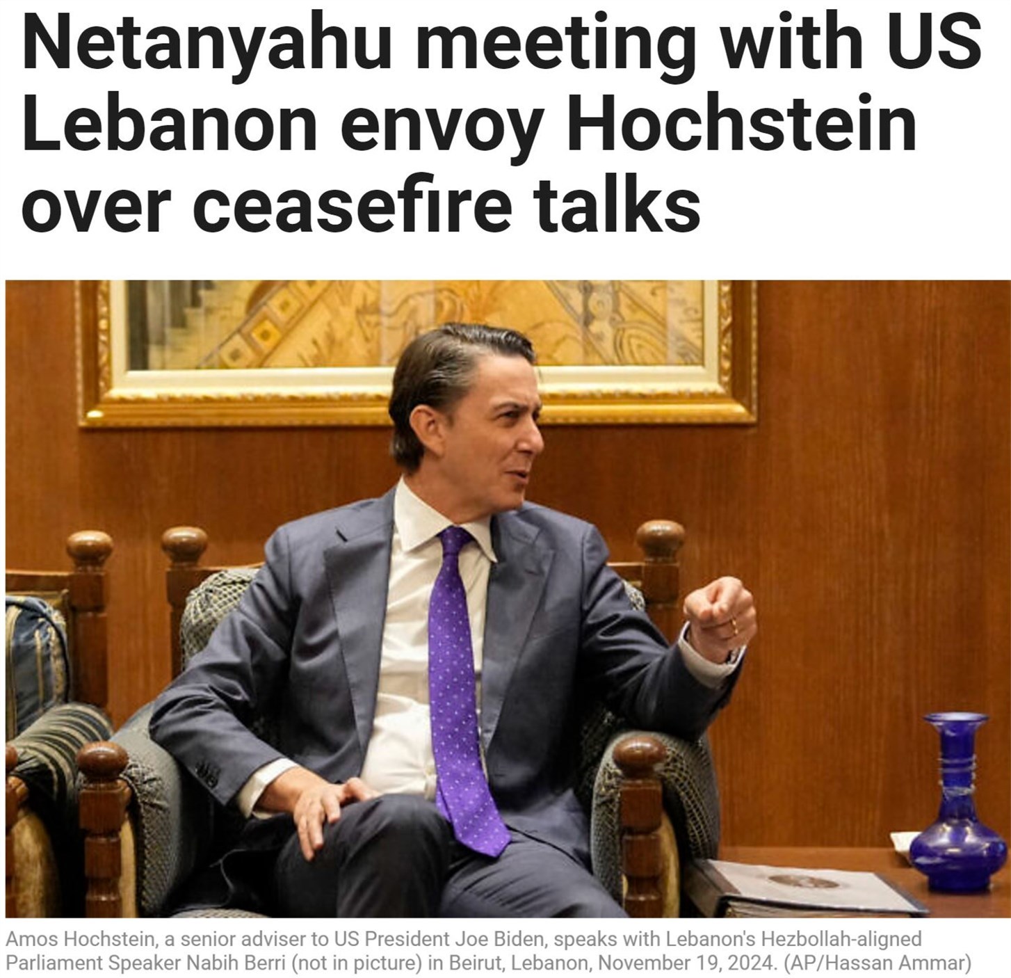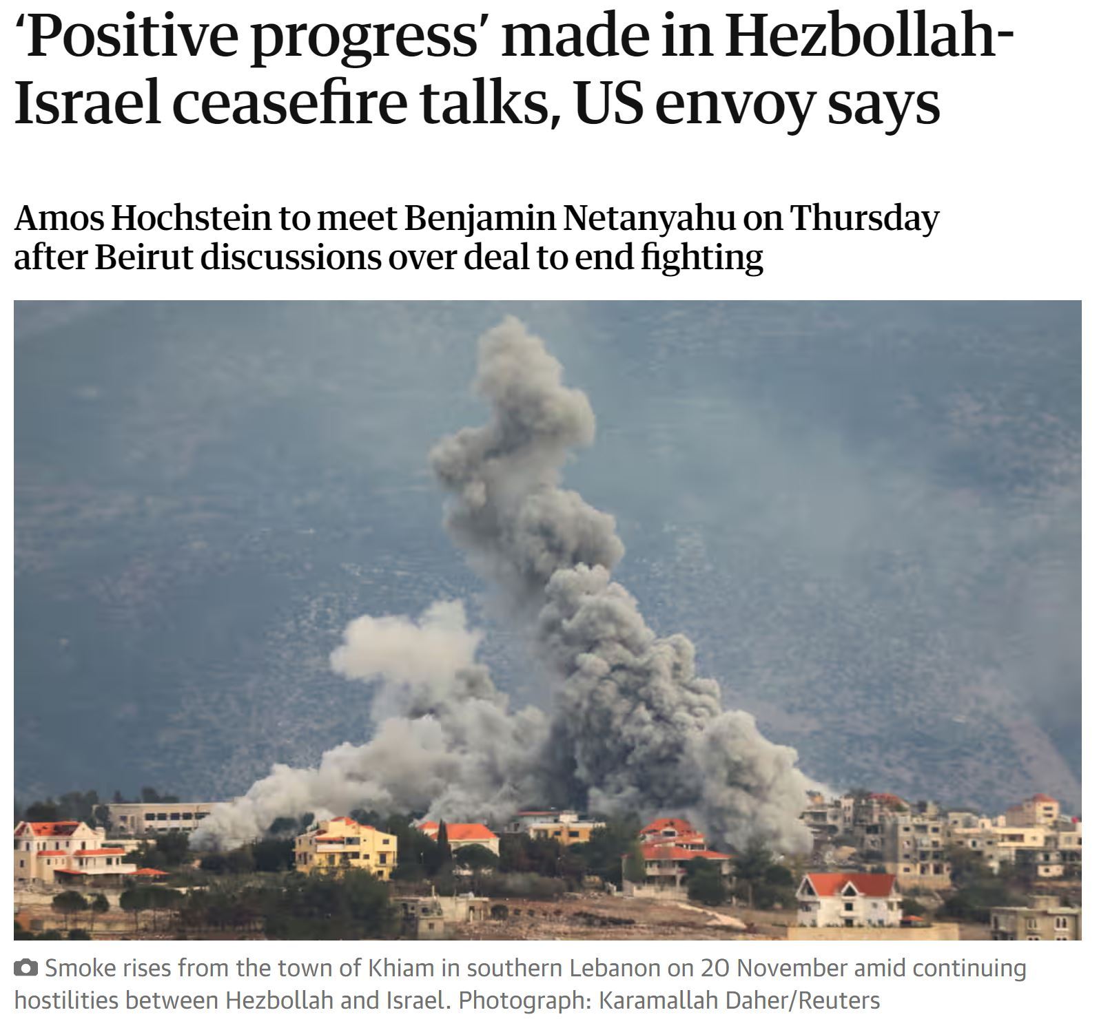 在到訪耶路撒冷之前,霍克斯坦在訪問黎巴嫩期間曾表示,黎以雙方的分歧已經“顯著縮小”,達成停火協議“觸手可及”。