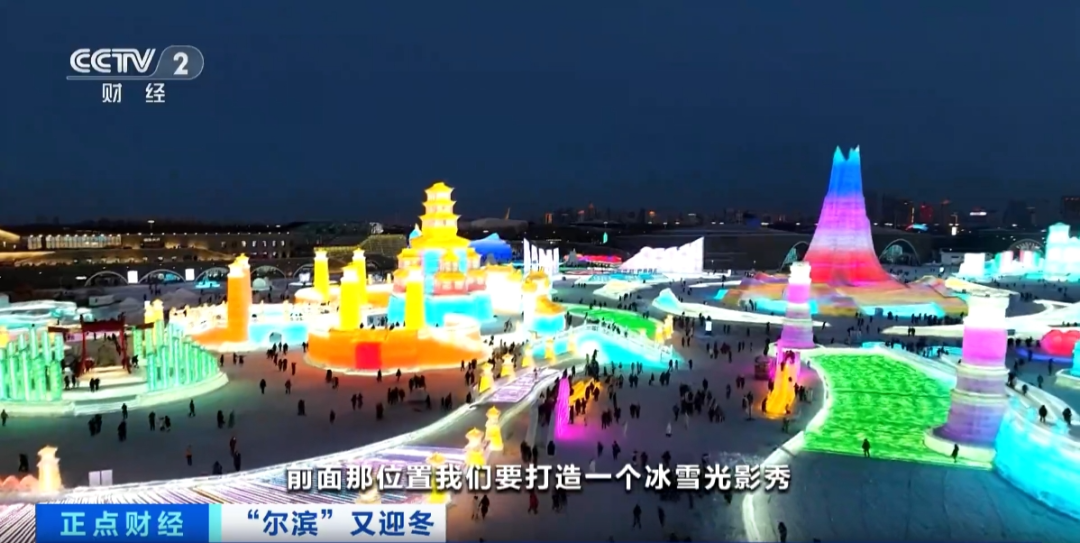 *哈爾濱冰雪大世界設計研發部部長 叢配玉:*今年的大舞台比去年要更加大。尺寸、寬度、縱深都比去年又有提升了。今年我們要打造一個冰雪光影秀,去年的大滑梯16條,今年在去年的基礎上又增加了8條。