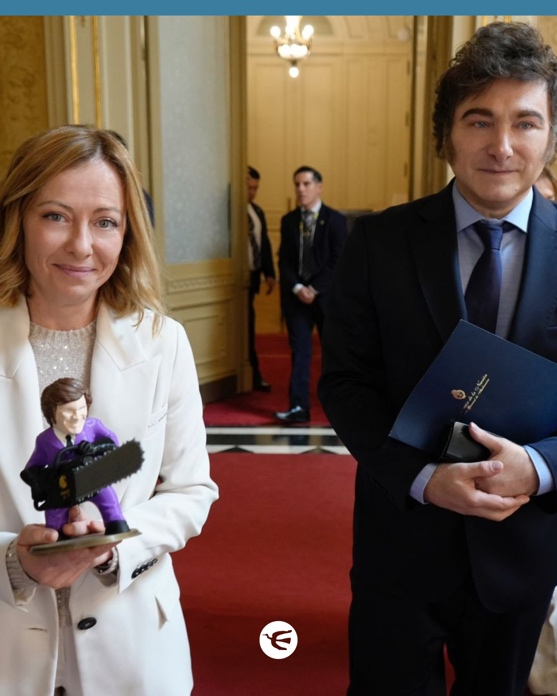 外媒:意總理到訪,阿根廷總統米萊送她“奇怪”禮物——以他本人揮舞電鋸為造型的手辦
