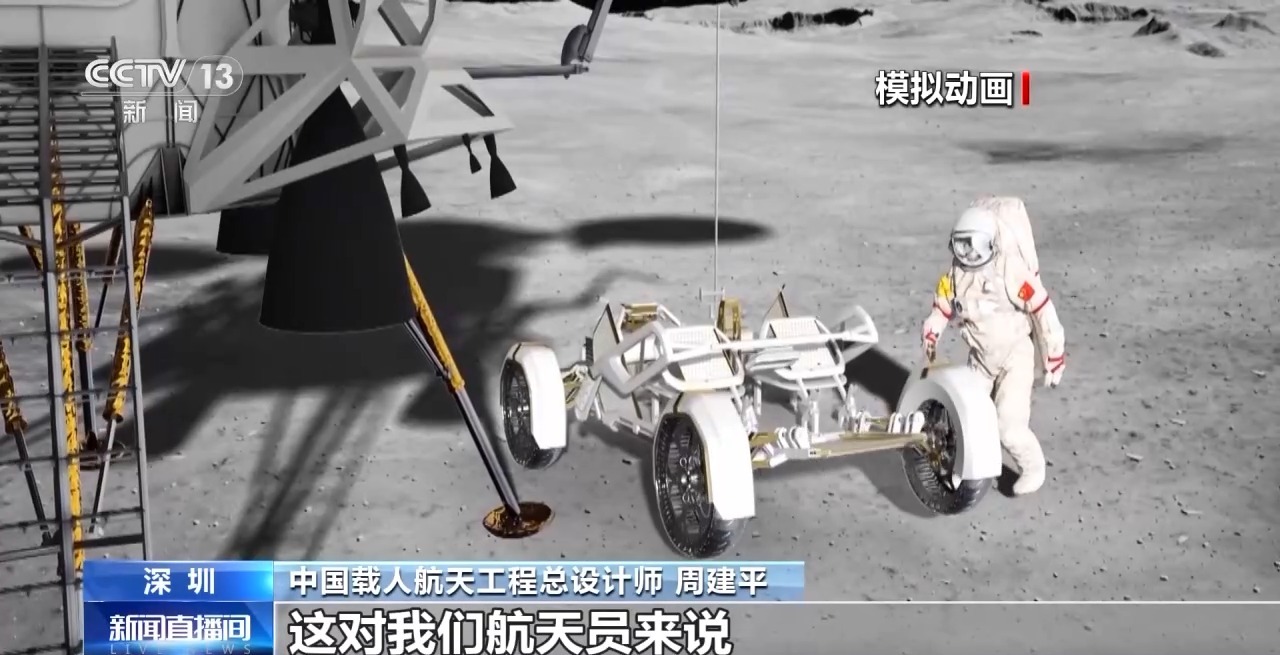 *中國載人航天工程總設計師 周建平:*航天員要從着陸器出艙,要駕駛月球車到月球表面進行科學的考察。而月球的重力是地球的1/6,這對航天員、對航天員的裝備都有新的挑戰。