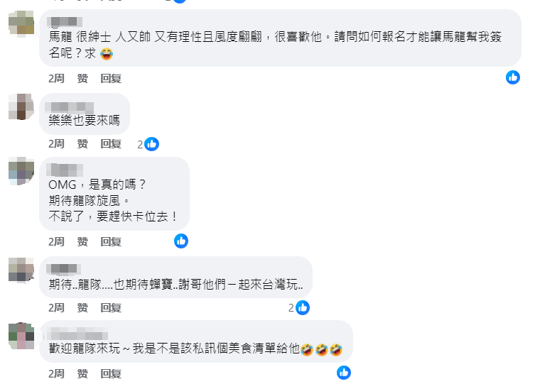 消息一經發布,立刻引發島內網友熱議。“OMG,是真的嗎”“期待龍隊旋風”“歡迎龍隊來玩”“如何報名才能讓馬龍幫我簽名”“請假去看龍哥”……
