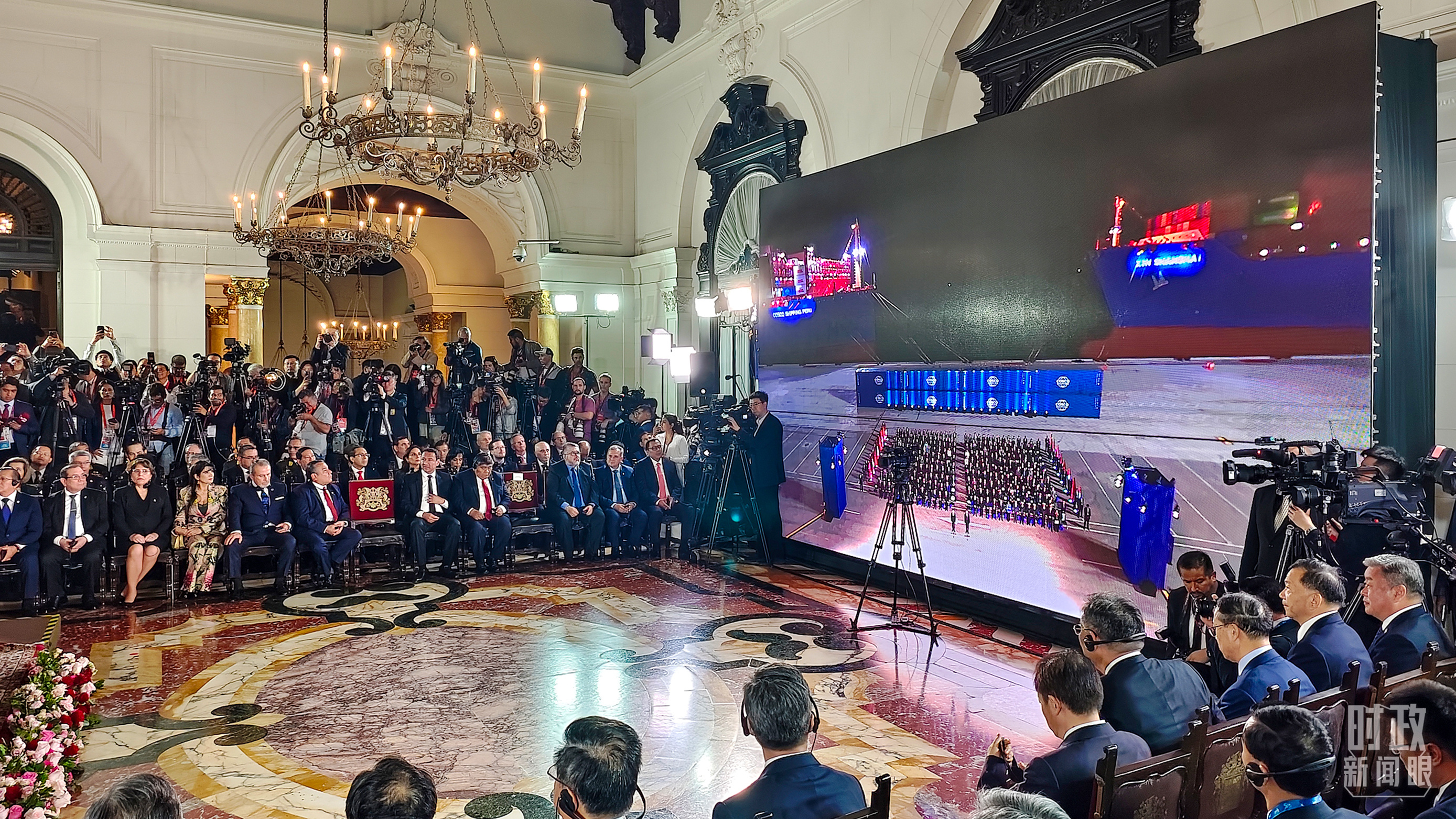 一場儀式,指的是秘魯錢凱港開港儀式。錢凱港是中秘共建“一帶一路”重要項目,也是南美首個智慧港口和綠色港口。此訪期間,兩國元首以視頻方式共同出席開港儀式,下達“開港”指令。隨着錢凱港的開港,中秘間單程海運時間將縮短至23天。這個新港口也見證着一條新時代亞拉陸海新通道的誕生。