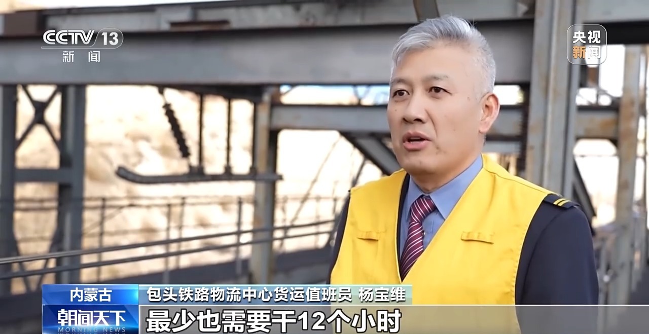 *包頭鐵路物流中心貨運值班員 楊寶維:*原來我們裝載一列車,需要用四台裝載機和七八個工人,最少也需要幹12個小時,現在不到兩個小時就能完成了。