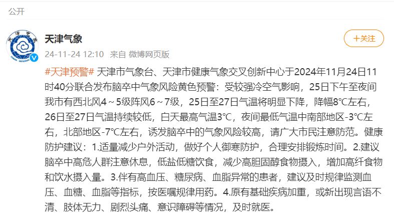 降温8℃!天津最新預警!這波寒潮,影響面積到底有多大?