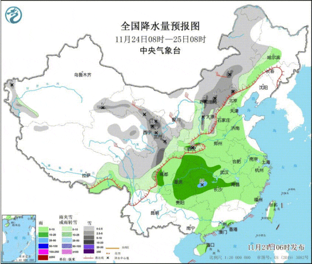 *此次寒潮還伴隨大範圍雨雪過程,內蒙古、東北地區將是此次雨雪過程的核心區,累計降雪量有20至35毫米。*預計,11月24日至27日,西北地區大部、內蒙古、華北西部和北部、東北地區及黃淮東部等地將先後有降雪或雨轉雨夾雪或雪,部分地區有大到暴雪,其中,內蒙古東北部、黑龍江局地有大暴雪或特大暴雪;華北中南部、黃淮大部及以南地區有小到中雨,局地有大雨。