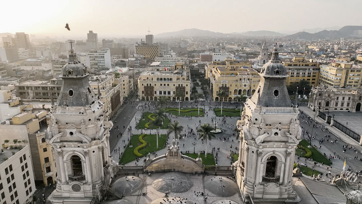 利馬市中心武器廣場,棕櫚婆娑,噴泉歡湧,72匹駿馬昂首闊步,護衞習近平主席車隊前行。禮炮震徹雲霄,山鷹展翅飛翔,在“南美洲解放者”聖馬丁將軍宣佈秘魯獨立的地方,激昂的軍樂久久迴響。總統府前廣場,沿着長長的紅毯,兩國元首並肩而行,向持戟站立的禮兵揮手致意。