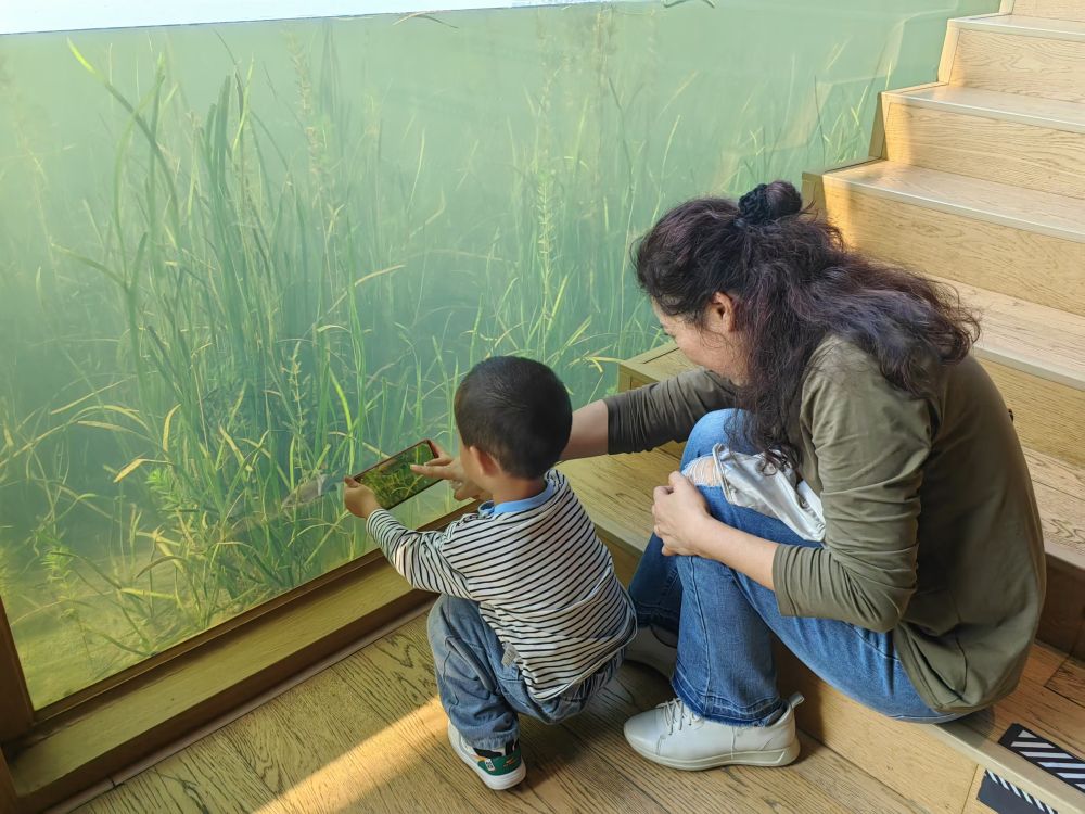 興隆湖畔的湖畔書店,人們透過書店內的玻璃幕牆,可以看到湖底的景象。新華社記者董小紅 攝