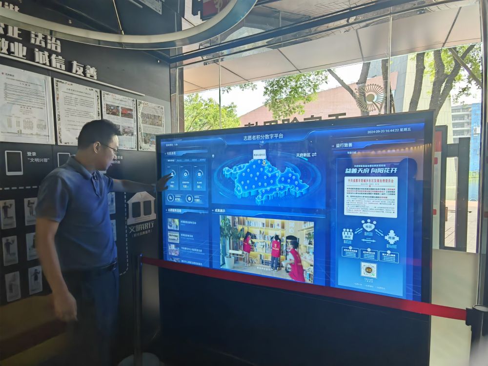 麓湖公園社區工作人員在介紹志願者積分數字平台。新華社記者董小紅 攝