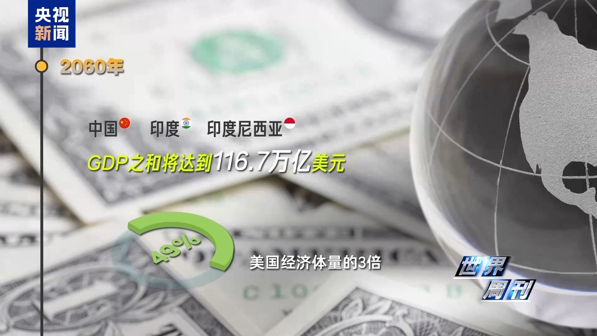 據經合組織預測,到2060年,中國、印度和印度尼西亞的GDP之和將達到116.7萬億美元,佔全球GDP總量的49%,是美國經濟體量的3倍。