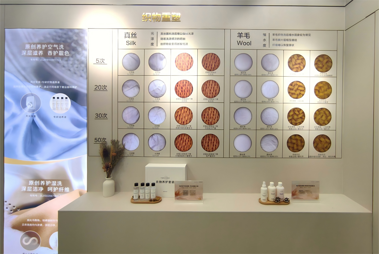 而會上展出的卡薩帝墅式L+熱泵洗烘一體機、中子融朗洗烘護一體機搭載原創養護濕洗科技,通過精控莫比烏斯運行軌跡實現衣物的最佳輕柔洗護角度,温柔呵護蠶絲面料,搭配專屬定製的濕洗乳液和纖維保護劑,有效包裹纖維形成保護膜,潔淨面料的同時避免面料因摩擦導致起球、損傷,讓蠶絲被等高端面料真正實現養護煥新。
