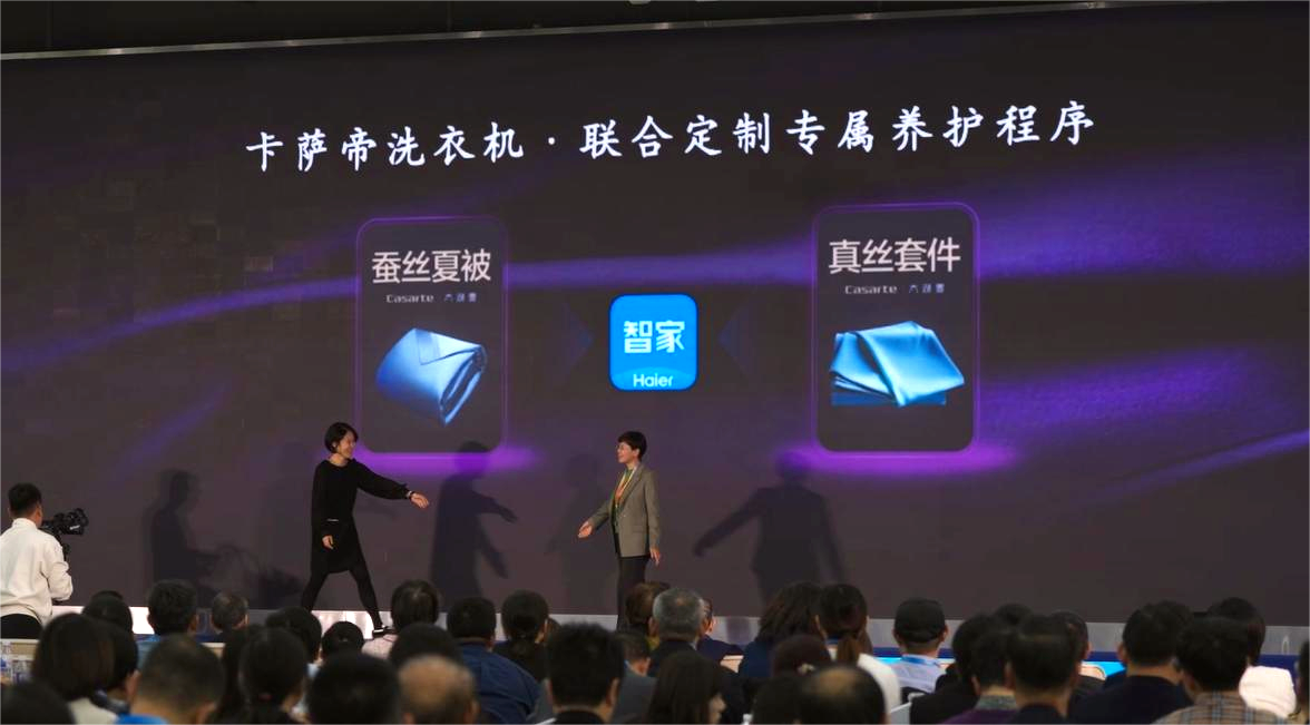 11月20日,2024中國家紡大會在青島召開。會上,卡薩帝洗衣機發布了蠶絲被、真絲套件的專屬定製養護程序,跨界家紡行業為用户帶來了機洗蠶絲被的解決方案,並被中國家用紡織品行業協會授予唯一指定高端家紡專業養護產品認證。