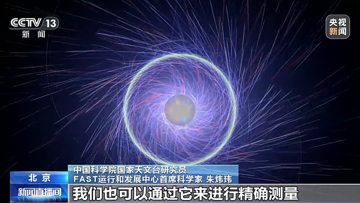 *中國科學院國家天文台研究員 FAST運行和發展中心首席科學家 朱煒瑋:*我們可以去研究各種引力效應、粒子物理。我們也可以通過它來進行精確測量。有些脈衝星轉得非常快,最快的脈衝星,它一秒鐘就能轉七百多次,它是宇宙中非常精準的一種“時鐘”。通過測量它們,我們可以建立更好的時間基準,可以用來導航,這也是可能未來能夠在我們的實際生活中有所用處的地方。