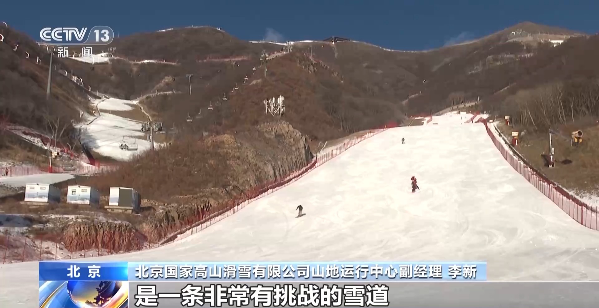 *北京國家高山滑雪有限公司山地運行中心副經理 李新:*我們將在12月份首次開放這條長度2163米、最大坡度達到64%的冬奧滑降雪道——瑞雪大道,這是一條非常有挑戰的雪道。