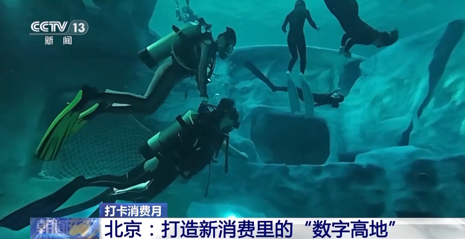 除了低空飛行,北京還打造了許多體驗式的消費新場景。在北京的這家商場內,消費者不僅可以購物,還能潛水。這裏的水深有16米,採用3D打印技術建造沉浸式潛水環境。水下造景華麗,各種科技元素尤為吸睛。
