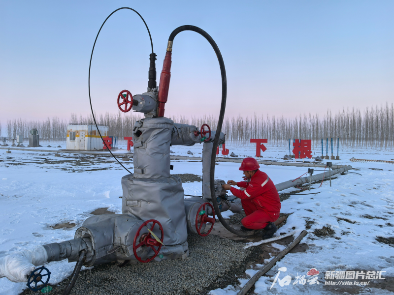 11月24日,在新疆油田吉慶油田作業區,採油工人孫鵬科正在查看172-H井儀表。石榴雲/新疆日報記者 於江豔攝