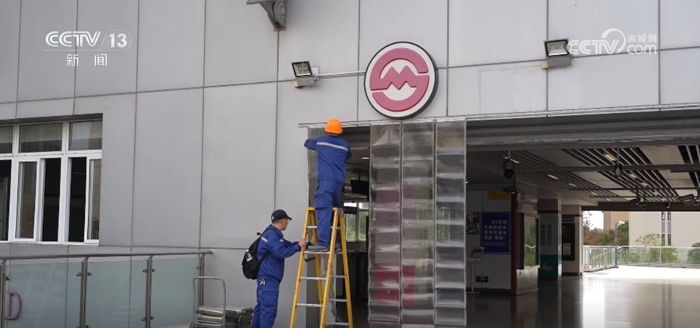 在上海軌道交通11號線白銀路站1號口,物業師傅們正在安裝擋風門簾。檢修人員也第一時間排查空調等設備,並做好防凍應對措施。