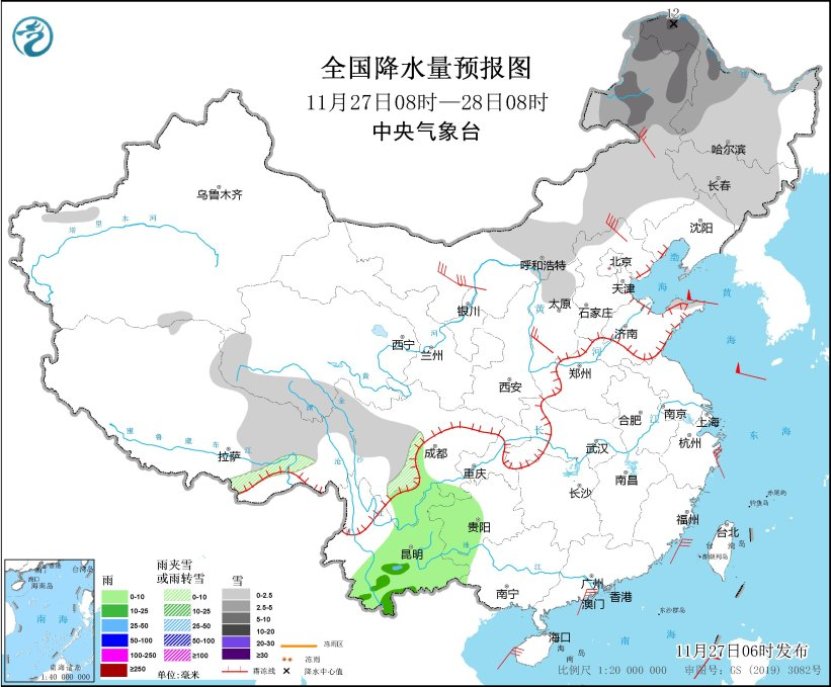 除了降温的影響,東北地區昨日出現強降雪,內蒙古呼倫貝爾和黑龍江大興安嶺、黑河、齊齊哈爾、伊春、鶴崗、佳木斯局地暴雪或大暴雪,鶴崗市和蘿北、佳木斯湯原局地特大暴雪(30~49.4毫米)。黑龍江、內蒙古有5個國家級氣象觀測站日降水量突破11月曆史極值。今晨,內蒙古東北部、黑龍江北部等地積雪深度達10~20釐米,黑龍江大興安嶺、黑河、鶴崗、佳木斯等局地30~48釐米。