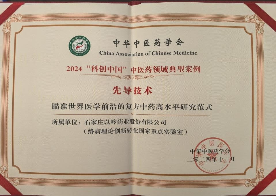 以嶺藥業“瞄準世界醫學前沿的複方中藥高水平研究範式”榮膺2024“科創中國”典型案例