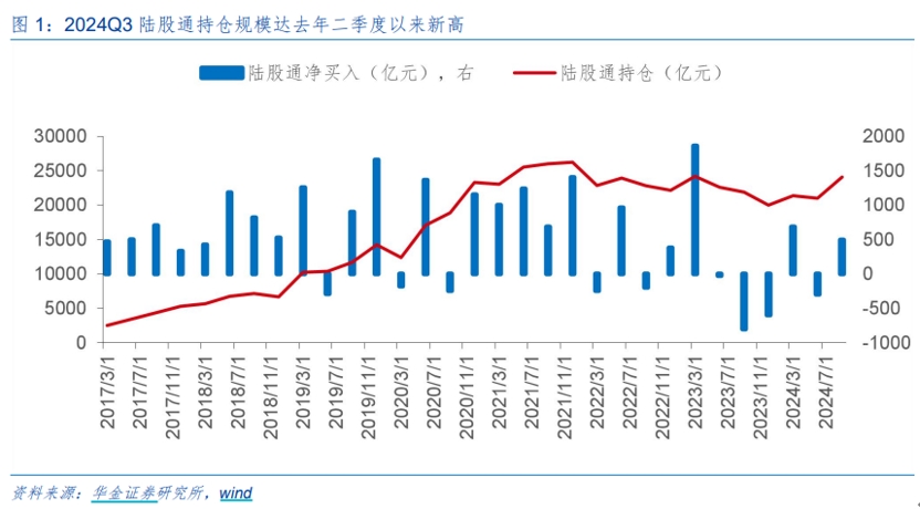 華金證券此前發佈研究報告中提到,2024年三季度北向資金持倉總規模達到2.4萬億元,較二季度環比增加3530億元,較8月16日持倉增加近5000億元,且為自2023年二季度以來的單季度持倉規模最高值;分板塊來看,2024年三季度北向資金主板持倉佔比較二季度下降1.68個百分點,創業板、科創板分別上升1.42個百分點、0.26個百分點。