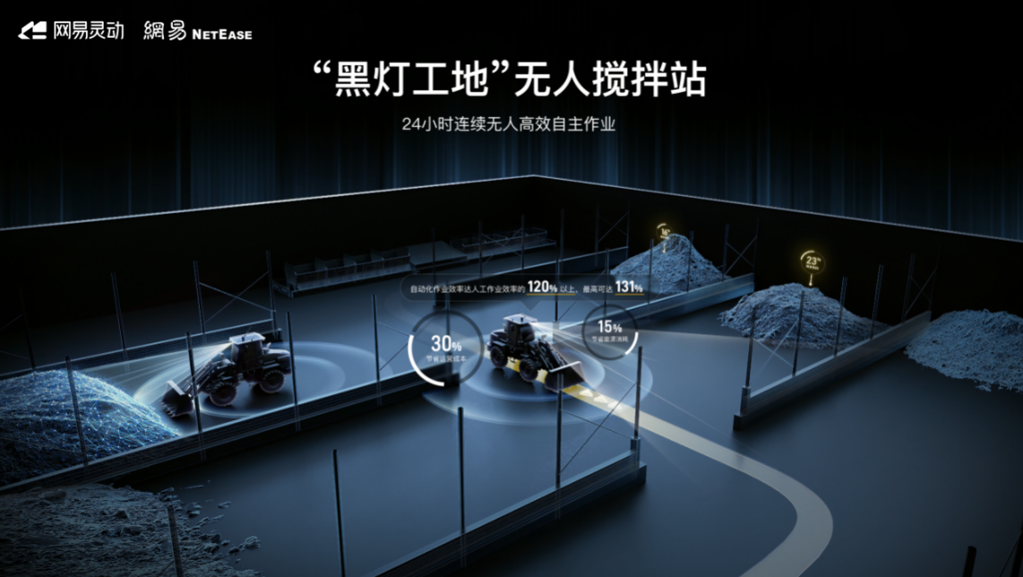 目前,網易靈動“黑燈工地”已落地上海滬通鐵路、104 國道攪拌站、甘肅路橋集團等項目。該方案生產效率可達傳統站點120%,能源消耗降低15%,綜合運營成本節省30%,把人從高危機械操作裏解放出來,保障作業安全高效。