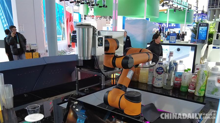 在西門子展台,一款正在工作的調酒機器人吸引了眾多參觀者駐足觀看。據介紹,該機器人以智能、AI交互、自動化為核心,簡化了傳統的調酒流程,還能通過語音互動和情緒感知系統,與顧客即時互動,獲取訂單、讀取配方、選擇基酒、加冰、搖酒等流程一氣呵成。值得一提的是,它能通過面部識別感知顧客的情緒,自動推薦或定製專屬的產品,在標準化快速出品的同時,讓每一杯雞尾酒都富有濃濃的“人情味”。
